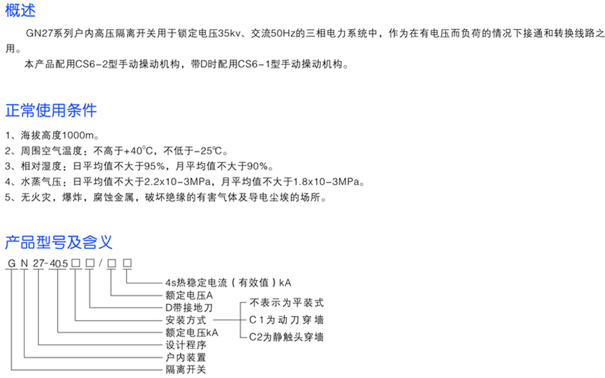 GN27系列戶內(nèi)高壓隔離開關(guān)