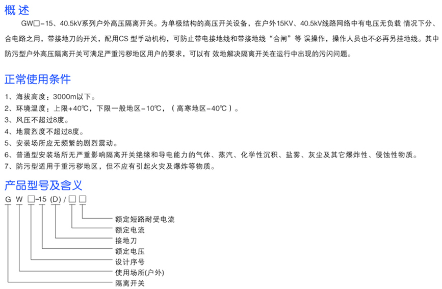 GW口-15系列戶外高壓隔離開關(guān)