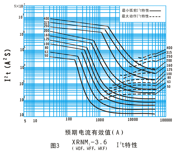 (2)時間---電流特性曲線如(圖1),最小開斷電流以上部分用虛線表示。