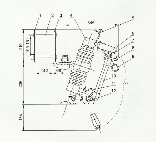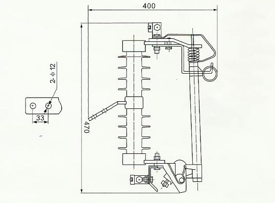 熔絲管兩端的動觸頭依靠熔絲(熔體)系緊,將上動觸頭推入"鴨嘴"凸出部分后,磷銅片等制成的上靜觸頭頂著上動觸頭,故而熔絲管牢固地卡在"鴨嘴"里。當(dāng)短路電流通過熔絲熔斷時(shí),產(chǎn)生電弧,熔絲管內(nèi)襯的鋼紙管在電弧作用下產(chǎn)生大量的氣體因熔絲管上端被封死,氣體向下端噴出,吹滅電弧。由于熔絲熔斷,熔絲管的上下動觸頭失去熔絲的系緊力,在熔絲管自身重力和上、下靜觸頭彈簧片的作用下,熔絲管迅速跌落,使電路斷開,切除故障段線路或者故障設(shè)備。