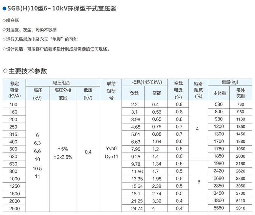 SGB(H)10型6~10kV環保型干式變壓器